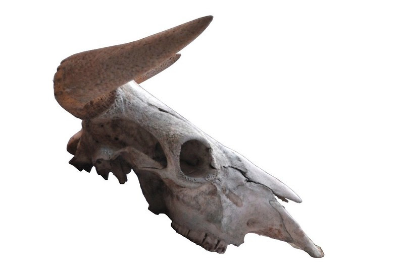 do a rough reconstruction of an average bull aurochs head. It is based only on